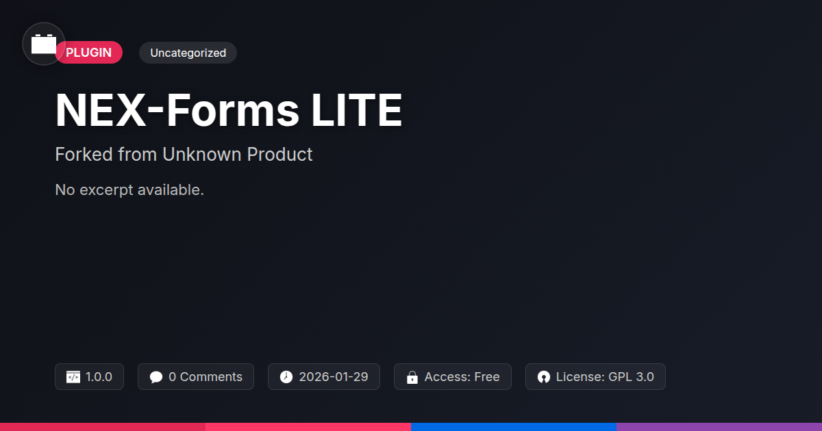 GrootMade is NOT affiliated with NEX-Forms LITE - Contact Form Builder or its original author. NEX-Forms LITE - Contact Form Builder™ is a trademark of its respective owner and use of it does not imply any endorsement or affiliation. This product has been forked under the GNU General Public License (GPL) and all non-GPL assets (such as proprietary images, fonts, and branding) have been removed. Distributing GPL-licensed code is 100% legal.