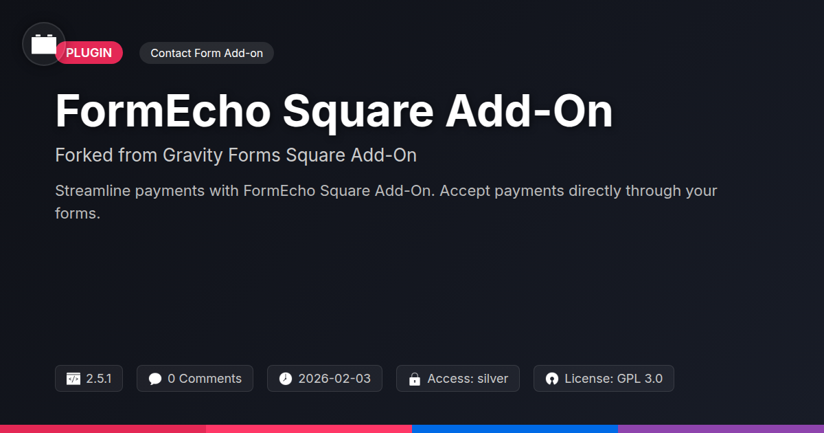 So, there you have it. You’ve journeyed through the labyrinthine world of form enhancement and emerged, blinking, into the glorious sunlight of integrated payment processing. We’ve seen how FormEcho Square Add-On isn't just another plugin; it's a community-driven evolution, a testament to what happens when great code meets a desire for flexibility and a good laugh. For the developers among us, imagine the possibilities – fewer external tools, more control, and the sheer joy of knowing you’ve built something robust and adaptable. Agencies, picture this: your clients, blissfully unaware of the complex machinations behind the scenes, simply seeing a seamless, professional way to collect money. And for the open-source aficionados, well, you’re home. This is your playground, your chance to contribute, to shape, and to openly benefit from a project built on collaboration. We’ve ditched the boilerplate and embraced the brilliant, transforming your forms from mere data collectors into powerful transaction engines. It’s about efficiency, security, and frankly, sanity. Because who needs more manual data entry and payment reconciliation when you can have smooth, automated transactions powered by a community that gets it? So go forth. Integrate. Innovate. And maybe, just maybe, make your next payment-related project the one that doesn't keep you up at night. The power to streamline payments is (literally) at your fingertips.