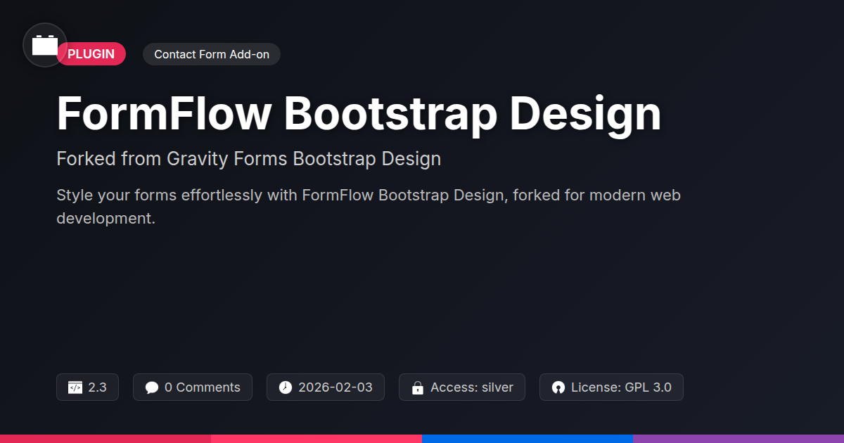 Imagine powerful form building. Now imagine it with stunning visual appeal. That's FormFlow Bootstrap Design. This project is a dedicated fork. It enhances a beloved form creator. It integrates the Bootstrap framework deeply. The result is immediate, beautiful forms. You get responsive designs without coding complex CSS. Forget manual tweaks and inconsistencies. FormFlow delivers a professional look out of the box. Agencies will find customization effortless. It maintains an open-source spirit. This offers efficiency and elegance. Developers gain a tool that's both effective and accessible. It bridges functionality with modern aesthetics.