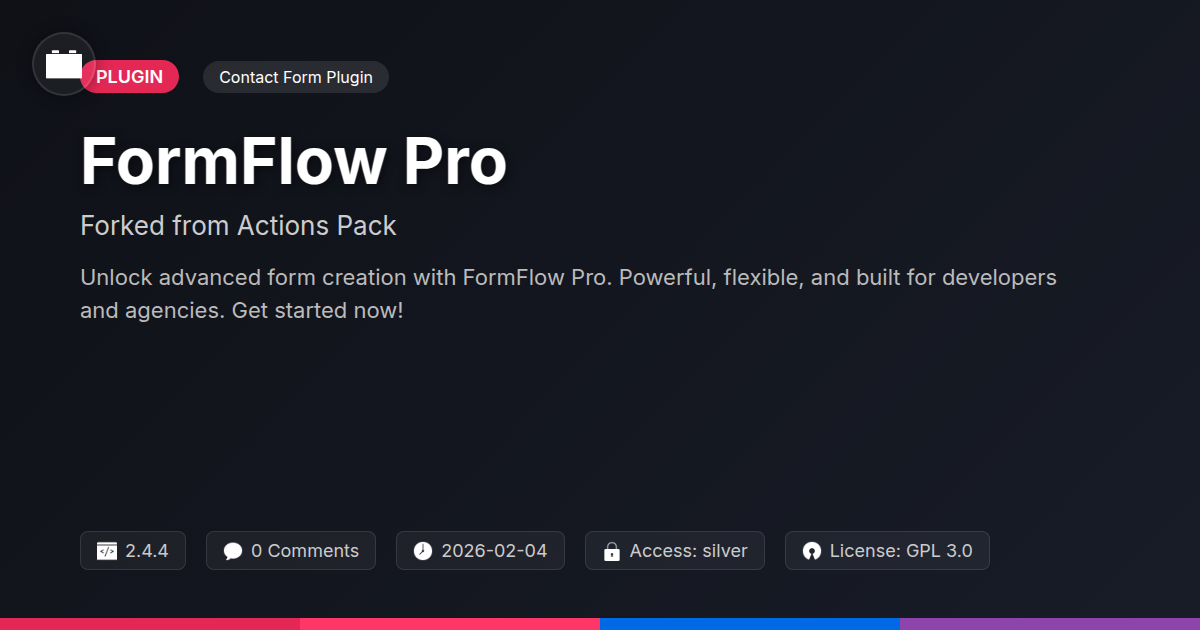 That's where FormFlow Pro was born. As a fork, we honor the original's spirit. We reinvent the wheel. We just put a sleeker tire on it. Our goal? To empower you. Developers get cleaner code. Agencies get tailored solutions. And open-source enthusiasts get a collaborative playground.