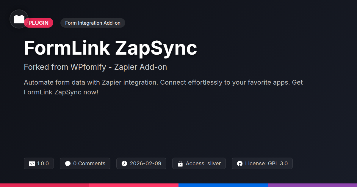So, are you finally ready to ditch the manual data entry drudgery and embrace the sweet, sweet nectar of automation? FormLink ZapSync, born from a desire for elegant and powerful solutions, is here to bridge the gap between your website forms and the vast ecosystem of cloud applications you rely on. For the seasoned developer who's seen it all, the agency looking to impress clients with seamless integrations, or the open-source enthusiast who appreciates a well-crafted tool, this is your opportunity to elevate your workflow. Imagine the time saved, the errors eliminated, and the sheer satisfaction of watching data flow effortlessly from your website to wherever it needs to be – your CRM, your email marketing platform, your project management tool, you name it. It’s not just about connecting; it’s about optimizing, about making your digital life more efficient, and frankly, about looking like a genius to anyone who’s still stuck in the spreadsheet-copying dark ages. FormLink ZapSync offers a robust, yet remarkably simple, way to achieve this. It allows you to leverage the power of Zapier without getting bogged down in complex coding or convoluted setups. Think of it as your personal digital assistant, tirelessly working in the background to ensure your data is where it needs to be, when it needs to be there. Stop letting repetitive tasks steal your valuable time and energy. It’s time to embrace a smarter way of working. With FormLink ZapSync, you’re not just adding a plugin; you’re investing in efficiency, in peace of mind, and in the future of your digital presence. Go ahead, connect your forms, automate your life, and reclaim your time. Your future, more productive self will thank you.