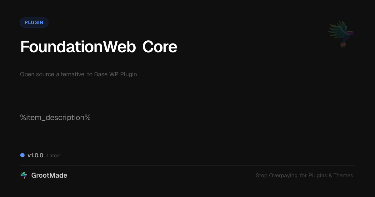 GrootMade is NOT affiliated with Base WP Plugin or its original author. Base WP Plugin™ is a trademark of its respective owner and use of it does not imply any endorsement or affiliation. This product has been forked under the GNU General Public License (GPL) and all non-GPL assets (such as proprietary images, fonts, and branding) have been removed. Distributing GPL-licensed code is 100% legal.