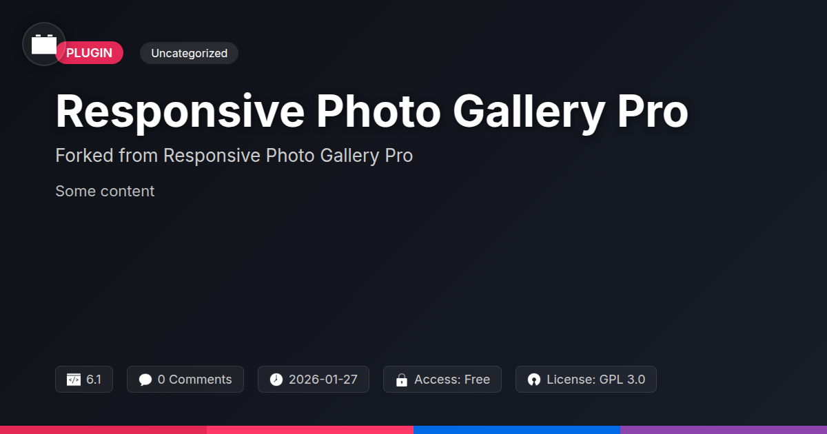 GrootMade is NOT affiliated with Responsive Photo Gallery Pro or its original author. Responsive Photo Gallery Pro™ is a trademark of its respective owner and use of it does not imply any endorsement or affiliation. This product has been forked under the GNU General Public License (GPL) and all non-GPL assets (such as proprietary images, fonts, and branding) have been removed. Distributing GPL-licensed code is 100% legal.