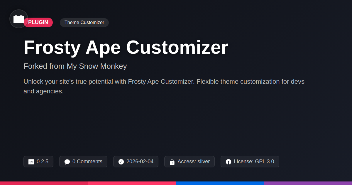 So there you have it – Frosty Ape Customizer, the tool that might just save your sanity and elevate your digital creations from 'meh' to 'OMG, who built this?!'. We know, we know, the world of theme modification can feel like navigating a minefield riddled with confusing options and cryptic code snippets. But frankly, if you’re a developer or a savvy agency that thrives on crafting bespoke digital experiences, you’ve probably been looking for something exactly like this. It’s about reclaiming control, injecting your unique flair, and saying goodbye to those generic templates that make every site look like a distant cousin. This isn't about slapping on a new coat of paint; it's about giving you the toolkit to restructure the entire house, from the foundation up, without calling in an expensive architect. For the open-source aficionados, it's a breath of fresh, community-driven air, free from the shackles of proprietary systems. It means transparency, collaboration, and the sweet satisfaction of knowing exactly what’s going on under the hood. So, stop wrestling with those bloated behemoths that promise the world and deliver a headache. Embrace the power of focused customization, the freedom of open code, and the sheer joy of building something truly spectacular. Your clients will thank you, your code will thank you, and frankly, your future self will probably send you a virtual fruit basket.