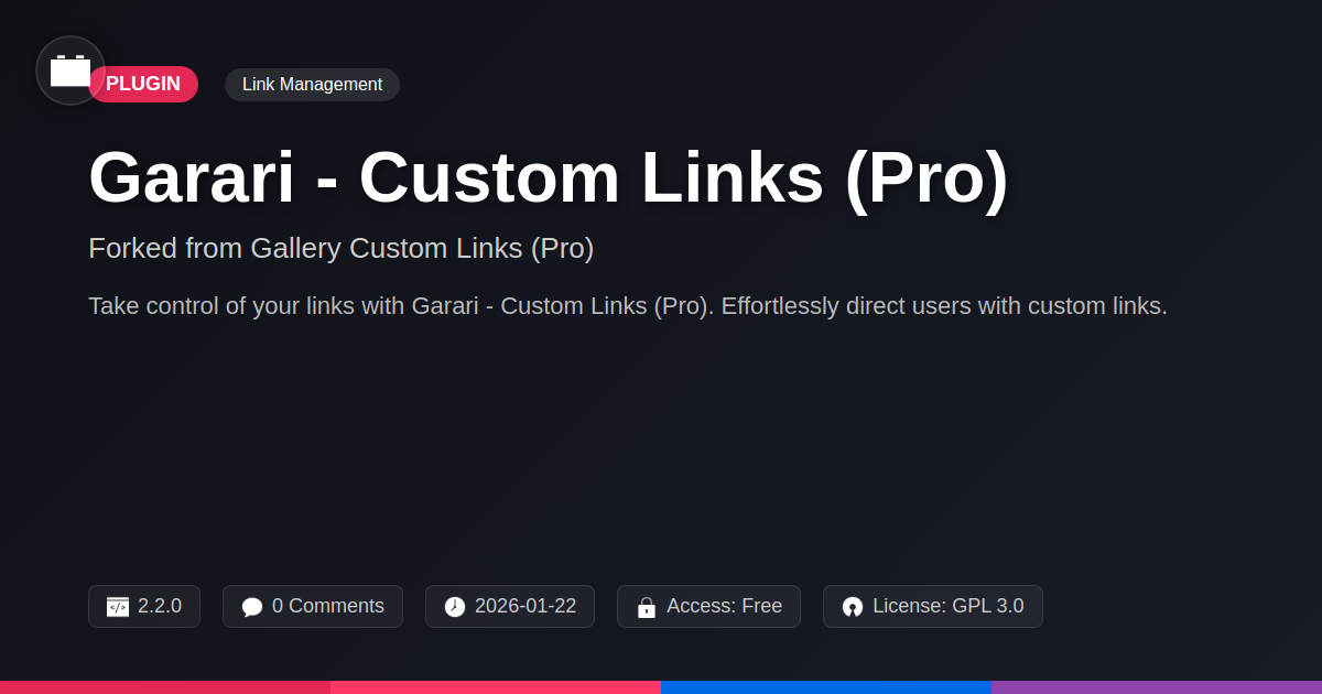 For the developers and agencies among us, the value extends beyond mere functionality. It translates into saved hours, reduced client queries about confusing navigation, and the ability to deliver more polished, professional websites. It’s the kind of tool that sits quietly in your arsenal, doing its job exceptionally well, allowing you to focus on the bigger picture – building remarkable online presences. And for the open-source enthusiasts, it’s a testament to how forks can refine and improve, building upon a solid foundation to offer even greater value. Ultimately, Garari - Custom Links (Pro) helps you achieve clarity, efficiency, and a superior user experience, proving that sometimes, the most impactful solutions are the ones that make the complex feel effortlessly simple. Go forth and link with purpose!