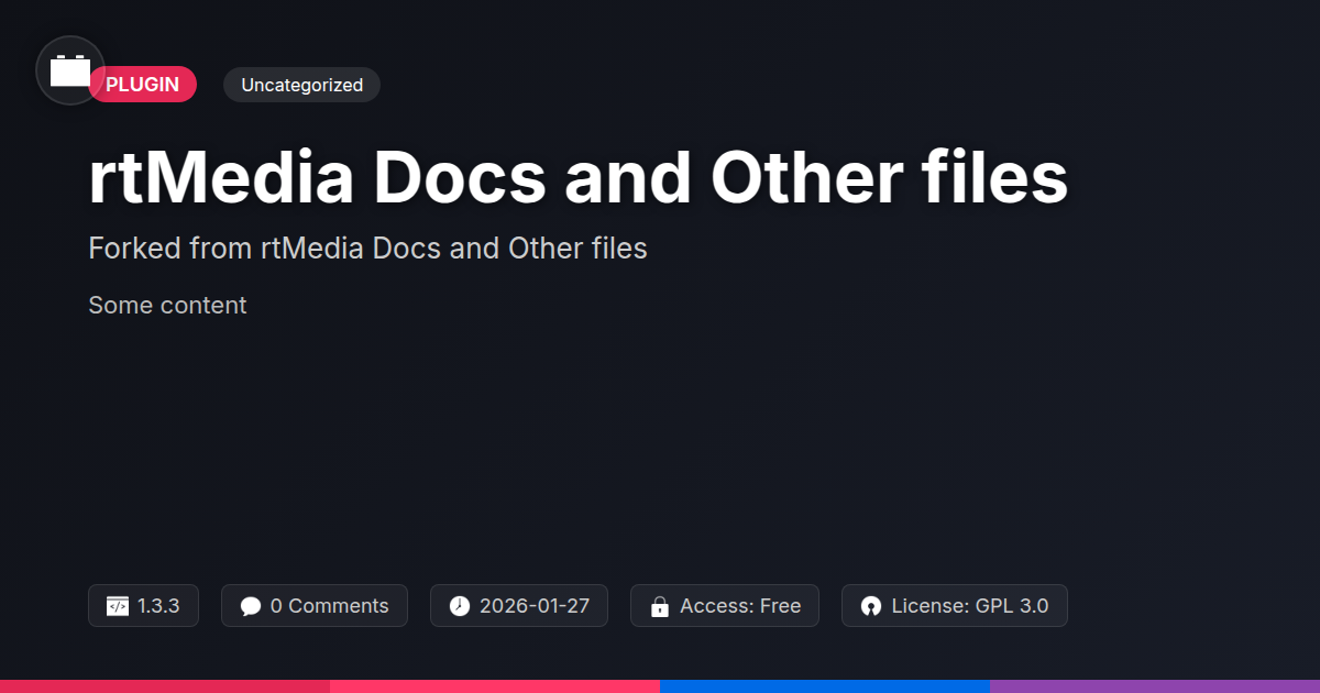 GrootMade is NOT affiliated with rtMedia Docs and Other files or its original author. rtMedia Docs and Other files™ is a trademark of its respective owner and use of it does not imply any endorsement or affiliation. This product has been forked under the GNU General Public License (GPL) and all non-GPL assets (such as proprietary images, fonts, and branding) have been removed. Distributing GPL-licensed code is 100% legal.
