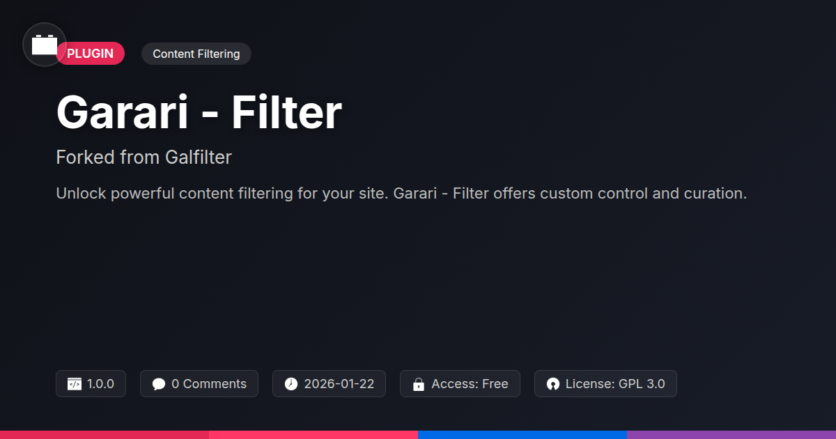 So, there you have it. Garari - Filter: it's not just a tool; it’s your digital Marie Kondo, but for content. Born from the wisdom of its predecessor and infused with a fresh dose of innovation, this isn't about reinventing the wheel, but about making that wheel spin faster, smoother, and with a whole lot less squeaking. For the developers tirelessly crafting digital experiences, for the agencies juggling client demands with an endless stream of content, and for the open-source faithful who believe in the power of shared progress, Garari - Filter offers a breath of fresh, highly organized air. We get it. The constant battle against cluttered interfaces, the precious hours lost to manual sorting, and the nagging feeling that managing content could, and should, be simpler. That's precisely the void Garari - Filter aims to fill, not with grandiose promises, but with robust functionality and a user-centric approach. It’s about empowering you to focus on what truly matters: building amazing things, delighting your clients, and perhaps, just maybe, enjoying your work a little bit more. Because let's be candid, when your tools work with you instead of against you, magic happens. This fork isn't just a technical change; it's a commitment to improvement, to adaptability, and to the vibrant open-source ethos. So, are you ready to stop wrestling with your content and start orchestrating it? Go ahead, give Garari - Filter a whirl. Your future, less-stressed self will thank you. And who knows, you might even find yourself having a bit of fun along the way. Now go forth and filter like you mean it!
