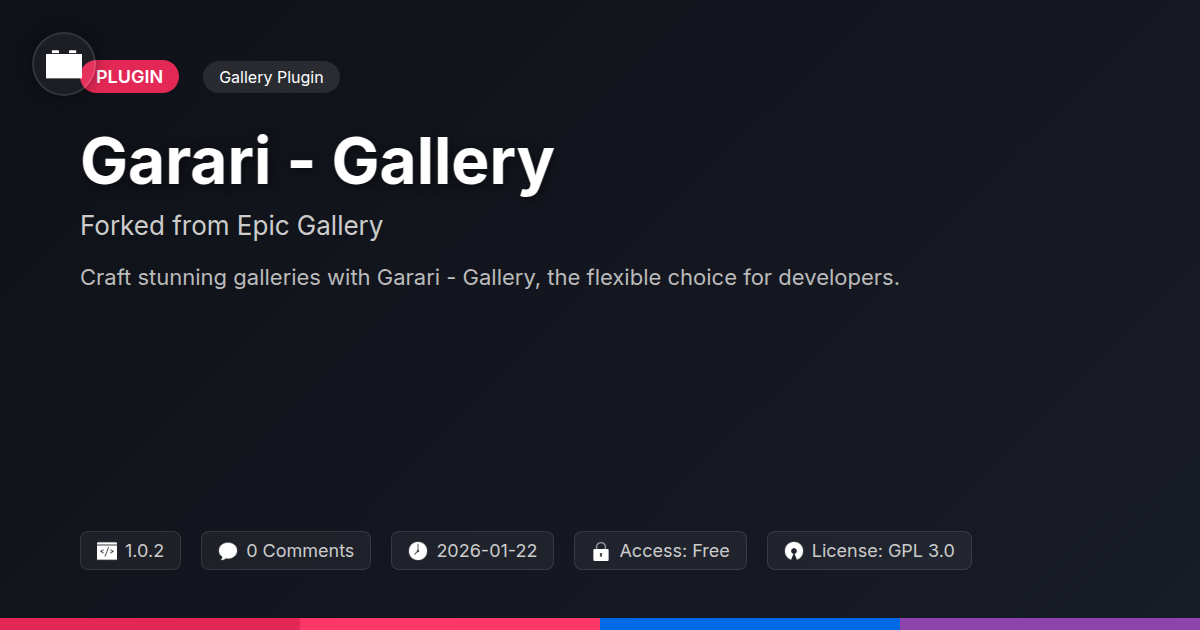 So, there you have it. Garari - Gallery – the plugin that finally lets you stop dreading image uploads and start actually enjoying the process. We’ve armed you with the knowledge of its flexible foundations, the gleeful rundown of its feature-packed arsenal, and the confidence to break free from the mundane grid. You're no longer tethered to the limitations that have plagued developers for too long. Think of it this way: you wouldn't build a skyscraper with a butter knife, so why try to build a stunning visual portfolio with a lackluster gallery plugin? Garari - Gallery is your finely tuned instrument, ready to help you craft experiences that not only look good but also function flawlessly. Whether you're a seasoned pro looking for ultimate control or an agency aiming to impress clients with unique, eye-catching designs, this plugin has your back. It’s for the open-source crowd who appreciate well-crafted code and community spirit, and for those who simply want a reliable tool that doesn’t come with a side of existential dread. Now go forth and make those galleries sing. Your website (and your sanity) will thank you.