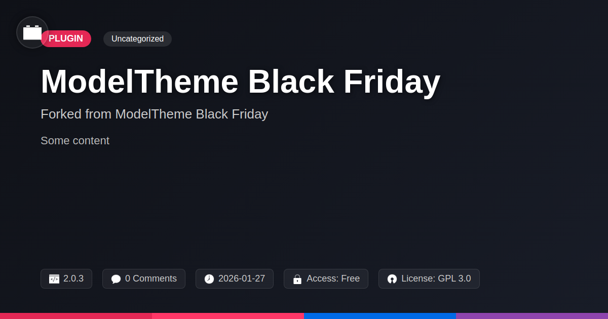 GrootMade is NOT affiliated with ModelTheme Black Friday or its original author. ModelTheme Black Friday™ is a trademark of its respective owner and use of it does not imply any endorsement or affiliation. This product has been forked under the GNU General Public License (GPL) and all non-GPL assets (such as proprietary images, fonts, and branding) have been removed. Distributing GPL-licensed code is 100% legal.
