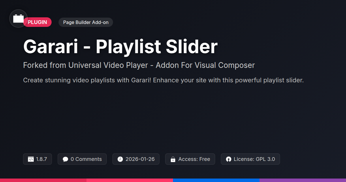 So, there you have it. Garari - Playlist Slider isn't just another tool to stuff into your digital toolkit; it's a carefully crafted solution born from a desire to make video integration less of a chore and more of a joy. For those of you who live and breathe code, or who manage client projects where efficiency and aesthetics are king, this little gem offers a breath of fresh air. No more wrestling with convoluted settings or praying that your video player doesn't decide to throw a tantrum on mobile. We’ve seen the headaches, the wasted hours, and the compromises developers often make when dealing with video content. Garari cuts through that noise with a sharp, elegant, and frankly, quite delightful interface. It’s the kind of tool that makes you wonder how you ever lived without it. Think of it as that perfectly tuned instrument in your orchestra – it just plays beautifully, allowing you to focus on the bigger picture: creating compelling user experiences. And the fact that it’s rooted in a robust, community-driven ethos? That’s just the icing on the cake. It's a testament to what happens when smart developers collaborate to solve real problems. So, go ahead, unleash your inner video maestro. It's time to stop fighting your video player and start making it sing. Garari is ready to help you hit all the right notes.