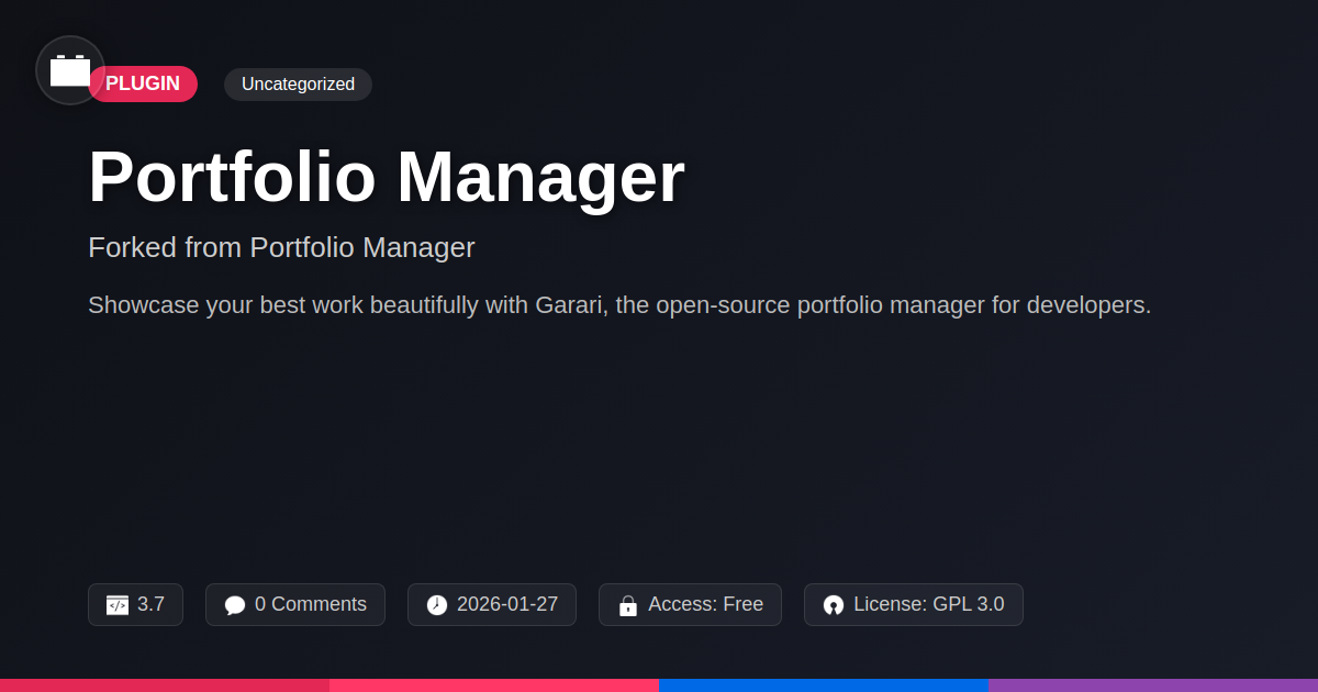 GrootMade is NOT affiliated with Portfolio Manager or its original author. Portfolio Manager™ is a trademark of its respective owner and use of it does not imply any endorsement or affiliation. This product has been forked under the GNU General Public License (GPL) and all non-GPL assets (such as proprietary images, fonts, and branding) have been removed. Distributing GPL-licensed code is 100% legal.