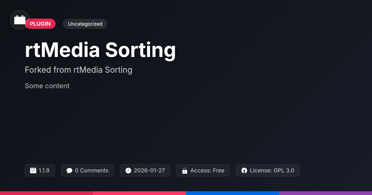 GrootMade is NOT affiliated with rtMedia Sorting or its original author. rtMedia Sorting™ is a trademark of its respective owner and use of it does not imply any endorsement or affiliation. This product has been forked under the GNU General Public License (GPL) and all non-GPL assets (such as proprietary images, fonts, and branding) have been removed. Distributing GPL-licensed code is 100% legal.