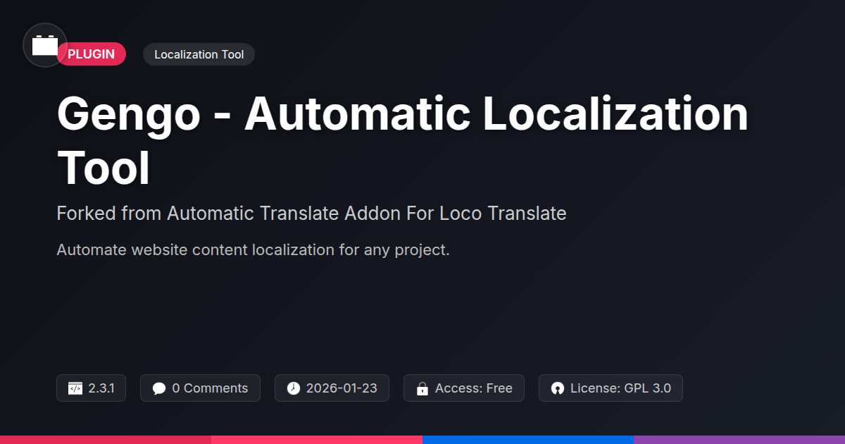 So there you have it, developers and digital wizards. We’ve journeyed through the often-dreaded landscape of website localization, a place where manual translations can turn your once-joyful coding sessions into a soul-crushing exercise in copy-pasting. But fear not! Gengo - Automatic Localization Tool, bless its forked heart, is here to rescue you from the linguistic abyss. It’s like finding that perfectly optimized query after hours of debugging – pure bliss. By taking the grunt work out of making your projects speak to a global audience, this tool liberates your most precious resource: your time. Imagine, more moments to architect elegant solutions, to dive into new frameworks, or even to perfect that meme you've been meaning to create. This isn't just about slapping some auto-translated text onto your site; it’s about unlocking new markets, connecting with users on a deeper level, and truly realizing the international potential of your creations. It respects your existing workflows, building upon a solid foundation to offer a smoother, more efficient experience. For the agencies out there, think of the client satisfaction, the expanded service offerings, and the sheer efficiency gains. For the open-source enthusiasts, it's about making collaboration and contribution more accessible across language barriers. Gengo is proof that powerful tools don't have to be overly complex or prohibitively expensive. It’s the smart, sarcastic, and effective solution you’ve been waiting for. Now go forth and localize, you magnificent multilingual maestros!