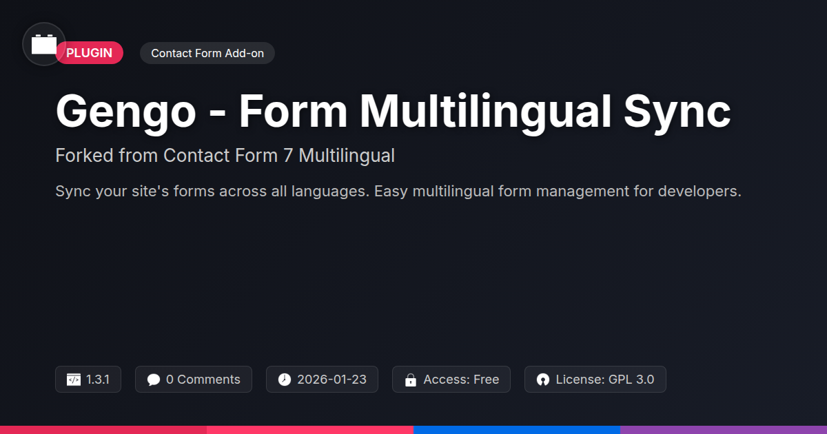 So, there you have it. Your forms, once monolingual prisoners of your website, can now become globetrotters, chatting up visitors from every corner of the earth in their own dialect. We’ve navigated the slightly nerdy but undeniably cool world of open-source forking and discovered how Gengo - Form Multilingual Sync isn't just another plugin; it's a declaration of independence from the tyranny of translation headaches. For developers and agencies who've spent countless hours wrestling with multilingual data, wrestling with picky clients, or frankly, just wrestling with themselves over how to make their forms speak more than one language, this is the breath of fresh air you’ve been waiting for. It’s built on a solid foundation, enhanced with a developer’s sensibility, and offered with the freedom that only open source can truly provide. No more copy-pasting fields, no more praying the translation plugins sync up correctly, just smooth, synchronized, multilingual form glory. It’s time to stop thinking of your international audience as a foreign concept and start treating them like the valued leads they are, all thanks to forms that speak their language. Embrace the simplicity, appreciate the power, and let your forms do the talking – in every language you support.