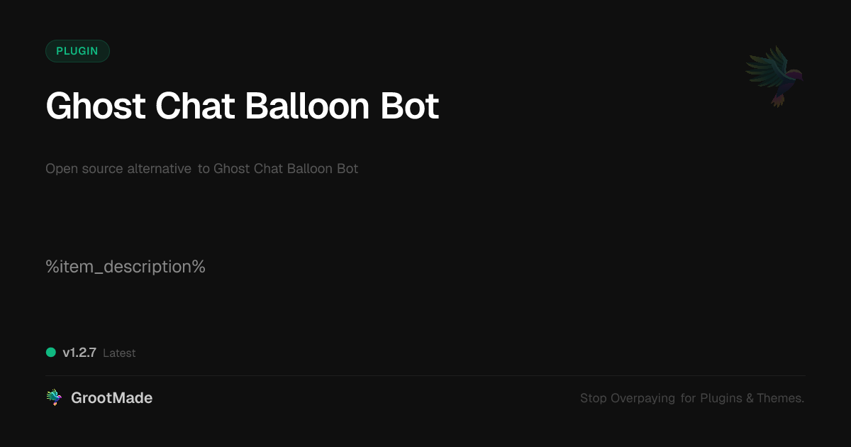 GrootMade is NOT affiliated with Ghost Chat Balloon Bot or its original author. Ghost Chat Balloon Bot™ is a trademark of its respective owner and use of it does not imply any endorsement or affiliation. This product has been forked under the GNU General Public License (GPL) and all non-GPL assets (such as proprietary images, fonts, and branding) have been removed. Distributing GPL-licensed code is 100% legal.