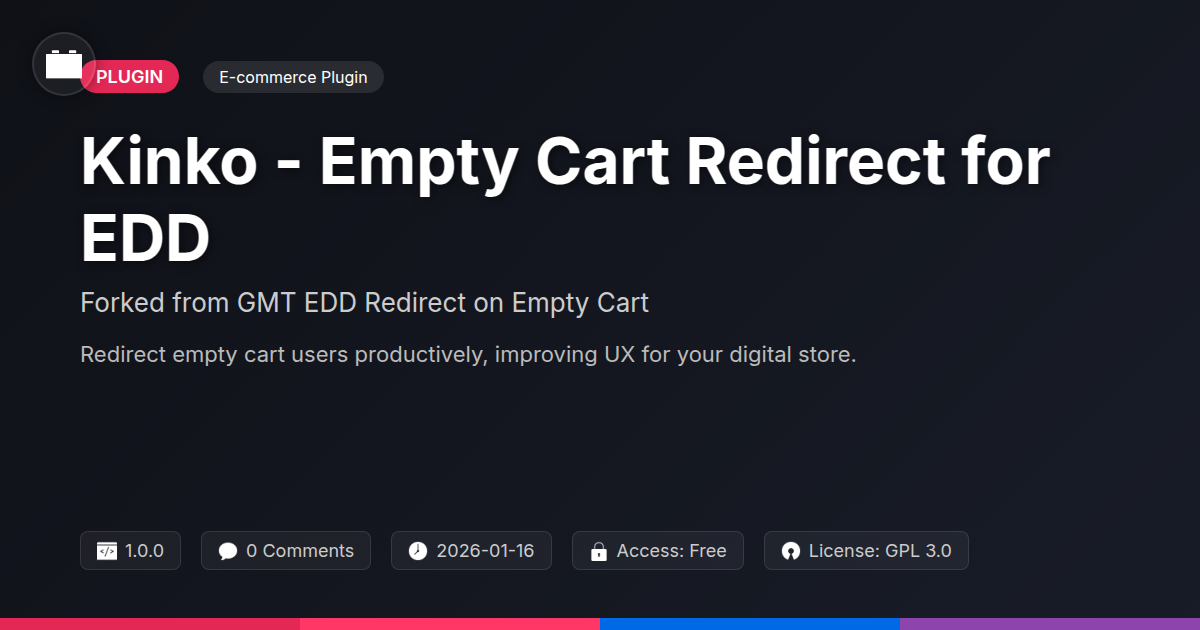 So, there we have it. The empty cart scenario, once a source of mild despair and an aesthetically questionable blank page, can now be a graceful segue. Kinko - Empty Cart Redirect for EDD isn't just a plugin; it's the digital equivalent of a polite maître d' guiding a potential diner back to their seat after they’ve wandered into the kitchen. For us developers and agency folks, it’s about those little wins, the bits of polish that make a client’s site feel more professional and less like a hastily assembled collection of parts. We love our code, but we also love when it just works, elegantly handling those edge cases that users inevitably stumble upon. This fork, born from a solid open-source foundation, understands that. It doesn’t add bloat; it subtracts annoyance. It doesn’t complicate; it clarifies. You get a simple, effective tool that takes care of a common user experience hiccup, freeing you up to focus on the bigger, more exciting challenges of building incredible digital experiences. Think of it as finally finding that missing piece of the puzzle, the one that keeps your checkout flow from looking like a typo in your site’s code. Embrace the simplicity, leverage the open-source ethos, and let Kinko handle the awkward empty cart moments. Your users, and your bottom line, will thank you.