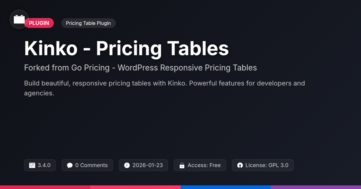 So there you have it. Kinko - Pricing Tables isn't just another plugin; it's a commitment to intelligent design and developer-centric functionality. We’ve stripped away the unnecessary fluff and focused on what truly matters: giving you the power to create pricing tables that not only look fantastic but also perform brilliantly. Say goodbye to the days of wrestling with clunky interfaces or settling for cookie-cutter designs. Whether you're an agency aiming to impress clients with slick proposals, a solo developer building a complex web application, or an open-source enthusiast who appreciates a robust, well-crafted tool, Kinko offers the flexibility and power you crave.
