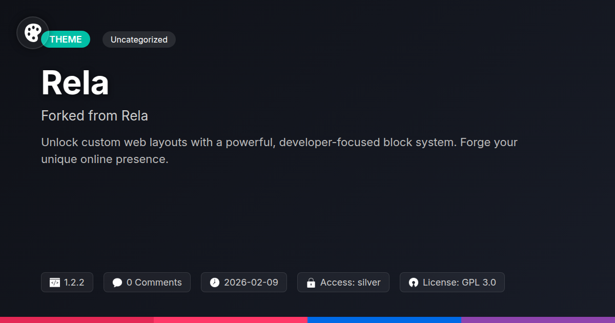 GrootMade is NOT affiliated with Rela or its original author. Rela™ is a trademark of its respective owner and use of it does not imply any endorsement or affiliation. This product has been forked under the GNU General Public License (GPL) and all non-GPL assets (such as proprietary images, fonts, and branding) have been removed. Distributing GPL-licensed code is 100% legal.