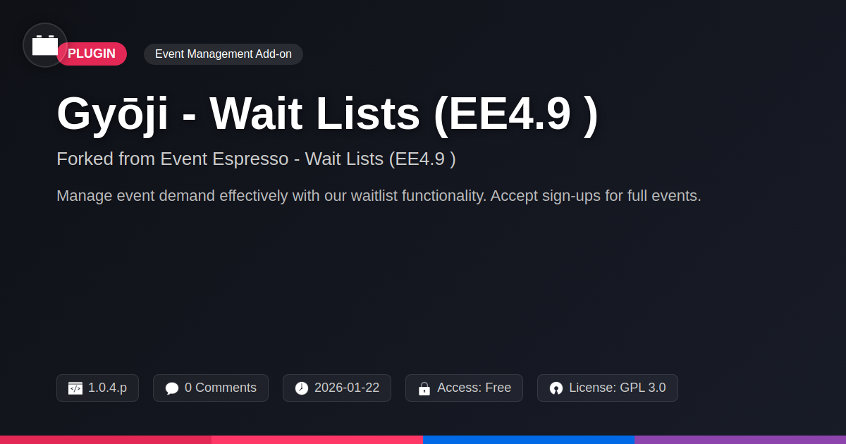 So, there you have it. The often-overlooked, yet surprisingly critical, art of the queue. We've journeyed from the existential dread of 'sold out' to the strategic brilliance of a well-managed waitlist. For the developers and agencies out there, this isn't just another plugin; it's a meticulously forked, battle-tested solution designed to seamlessly integrate with your existing event infrastructure (specifically, systems 4.9 and beyond, bless their modern hearts). It’s about transforming a potential customer complaint into a lead generation opportunity, a frustrated attendee into a loyal follower. Think of it as giving your events a polite, efficient bouncer rather than just slamming the door shut. You're not just managing capacity; you're nurturing relationships, gathering invaluable data, and ultimately, amplifying the success of every single event you host. The open-source spirit means you're getting a tool that's not just functional but part of a larger, evolving ecosystem. So, ditch the overflowing inbox and the apologetic replies. Embrace the elegant simplicity and strategic power of a robust waitlist. Your future self, and your incredibly popular events, will thank you.