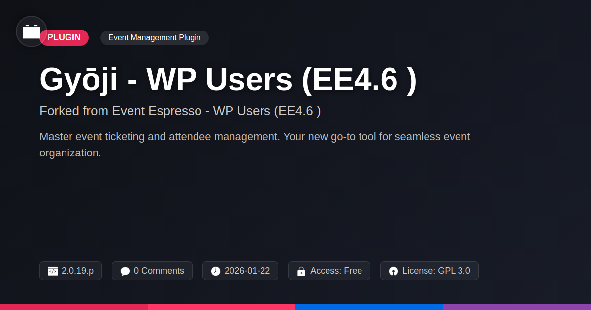 So, there you have it. You've journeyed through the ins and outs of Gyōji - WP Users (EE4.6+), a plugin that’s less about corporate jargon and more about getting things done with a healthy dose of pragmatic humor. We’ve dissected how it builds upon a proven legacy, offering robust event management and ticketing capabilities without reinventing the wheel – unless that wheel is made of solid gold and requires a blood sacrifice, in which case, yes, it definitely avoids that. You’ve seen how it empowers you to wrangle your attendees, transform your event pages from digital tumbleweeds into engaging experiences, and crucially, gives developers the kind of granular control that makes proprietary systems weep with envy. Because let's be honest, who wants to be a mere user when you can be a masterful architect of your own event destiny?
