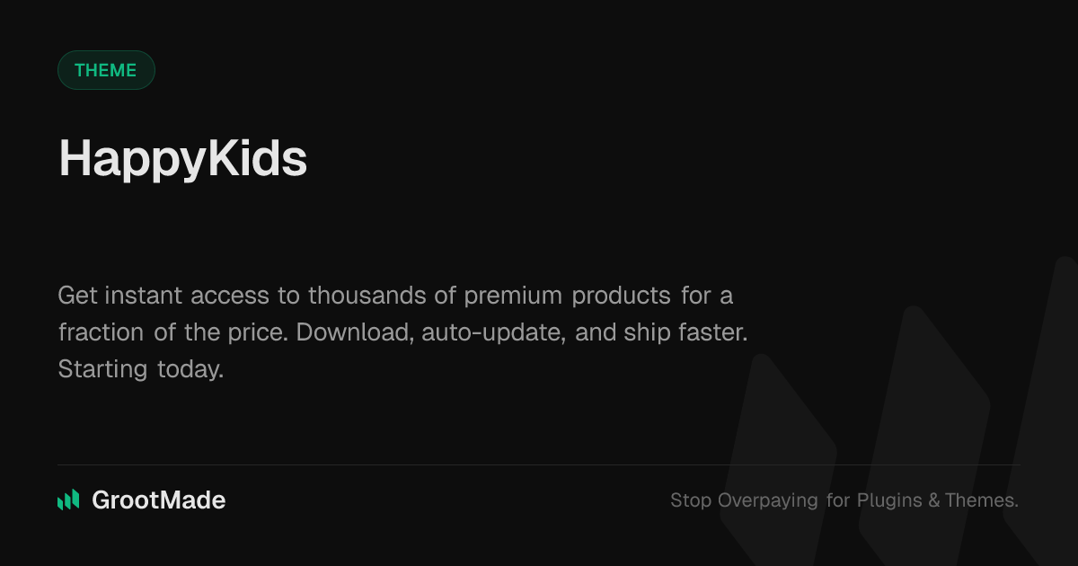 GrootMade is NOT affiliated with HappyKids or its original author. HappyKids™ is a trademark of its respective owner and use of it does not imply any endorsement or affiliation. This product has been forked under the GNU General Public License (GPL) and all non-GPL assets (such as proprietary images, fonts, and branding) have been removed. Distributing GPL-licensed code is 100% legal.