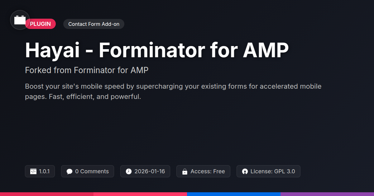 So, let's be honest. In the grand theatre of the internet, where attention spans are shorter than a social media caption, your forms need to be less of a speed bump and more of a well-oiled catapult. If you've been dabbling in accelerated mobile pages but your forms are still dragging their feet like they're stuck in a digital molasses pit, then it's time for an intervention. We’ve shed light on how Hayai - Forminator for AMP is that intervention, forked and refined for the discerning developer, the efficiency-obsessed agency, and frankly, anyone who loves seeing those submission rates climb without a side of user frustration. It’s not just about making forms work; it’s about making them fly. Think about the last time a slow-loading page made you hit the back button faster than you can say 'user experience.' Now, imagine your forms doing the opposite – bringing users in, collecting their valuable info, and doing it all with a speed that would make a cheetah jealous. This isn't about reinventing the wheel; it's about putting a rocket engine on it. For the open-source enthusiast, it’s a testament to the power of community and shared innovation. For the professional, it's a no-brainer tool to deliver superior results. So, ditch the lag, embrace the speed, and let your forms do what they’re supposed to do: convert. Make Hayai - Forminator for AMP your secret weapon for a faster, more engaging web experience.