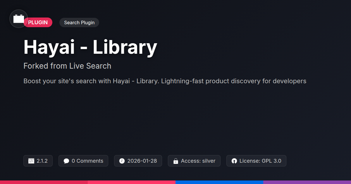 So, there you have it. If you've ever felt the dull ache of a poorly performing search bar, the sheer agony of watching potential customers abandon ship because they couldn't find that one specific widget, or the existential dread of explaining to a client why their site’s search feels like a choose-your-own-adventure book where all the choices lead to disappointment, then Hayai - Library is your digital savior. It's not just a plugin; it's a meticulously crafted tool born from solid code and a desire to make the internet just a little bit less frustrating. For the developers out there, you know the pain of shoehorning disparate functionalities together. Hayai - Library offers a seamless integration, a flexible API, and the kind of performance that makes your code shine. Agencies, this is your secret weapon for client retention. Imagine the testimonials when a client sees their engagement skyrocket because finding things is now as easy as breathing. And to our beloved open-source community, you know quality when you see it. Hayai - Library embodies that ethos: transparent, robust, and built to empower. It’s a fork that honors its origins while forging its own path towards search perfection. Stop settling for ‘good enough’ search. Upgrade to an experience that delights, converts, and ultimately, makes your website the go-to destination. Give your users the gift of instant gratification, and yourself the gift of a job well done. Because let's face it, a faster, smarter search is no longer a luxury; it's a necessity. And Hayai - Library delivers it in spades.
