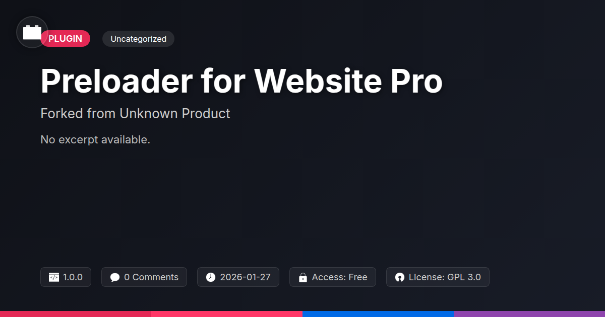 GrootMade is NOT affiliated with Preloader for Website Pro - WPOS or its original author. Preloader for Website Pro - WPOS™ is a trademark of its respective owner and use of it does not imply any endorsement or affiliation. This product has been forked under the GNU General Public License (GPL) and all non-GPL assets (such as proprietary images, fonts, and branding) have been removed. Distributing GPL-licensed code is 100% legal.