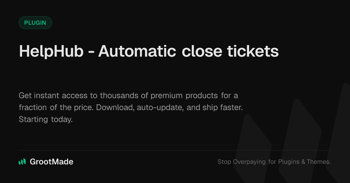 GrootMade is NOT affiliated with SupportCandy - Automatic close tickets or its original author. SupportCandy - Automatic close tickets™ is a trademark of its respective owner and use of it does not imply any endorsement or affiliation. This product has been forked under the GNU General Public License (GPL) and all non-GPL assets (such as proprietary images, fonts, and branding) have been removed. Distributing GPL-licensed code is 100% legal.
