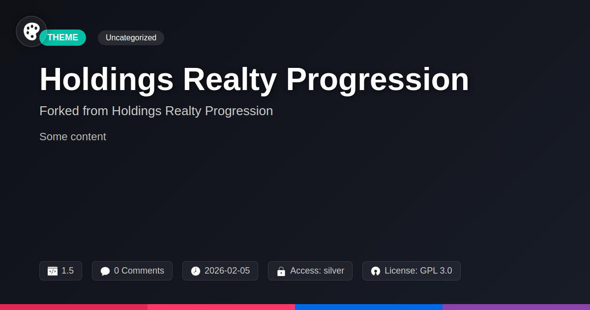 GrootMade is NOT affiliated with Holdings Realty Progression or its original author. Holdings Realty Progression™ is a trademark of its respective owner and use of it does not imply any endorsement or affiliation. This product has been forked under the GNU General Public License (GPL) and all non-GPL assets (such as proprietary images, fonts, and branding) have been removed. Distributing GPL-licensed code is 100% legal.