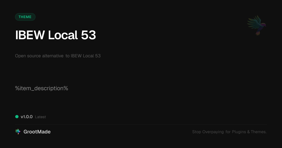 GrootMade is NOT affiliated with IBEW Local 53 or its original author. IBEW Local 53™ is a trademark of its respective owner and use of it does not imply any endorsement or affiliation. This product has been forked under the GNU General Public License (GPL) and all non-GPL assets (such as proprietary images, fonts, and branding) have been removed. Distributing GPL-licensed code is 100% legal.