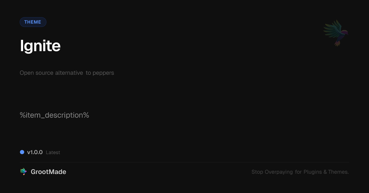 GrootMade is NOT affiliated with peppers or its original author. peppers™ is a trademark of its respective owner and use of it does not imply any endorsement or affiliation. This product has been forked under the GNU General Public License (GPL) and all non-GPL assets (such as proprietary images, fonts, and branding) have been removed. Distributing GPL-licensed code is 100% legal.