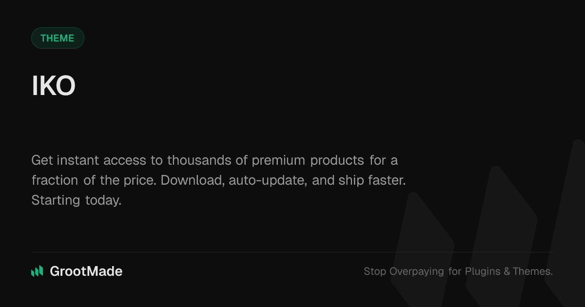 GrootMade is NOT affiliated with IKO or its original author. IKO™ is a trademark of its respective owner and use of it does not imply any endorsement or affiliation. This product has been forked under the GNU General Public License (GPL) and all non-GPL assets (such as proprietary images, fonts, and branding) have been removed. Distributing GPL-licensed code is 100% legal.