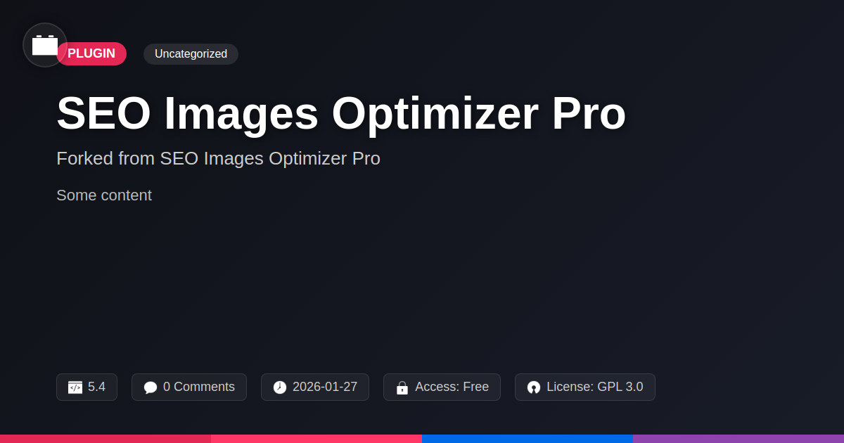 GrootMade is NOT affiliated with SEO Images Optimizer Pro or its original author. SEO Images Optimizer Pro™ is a trademark of its respective owner and use of it does not imply any endorsement or affiliation. This product has been forked under the GNU General Public License (GPL) and all non-GPL assets (such as proprietary images, fonts, and branding) have been removed. Distributing GPL-licensed code is 100% legal.