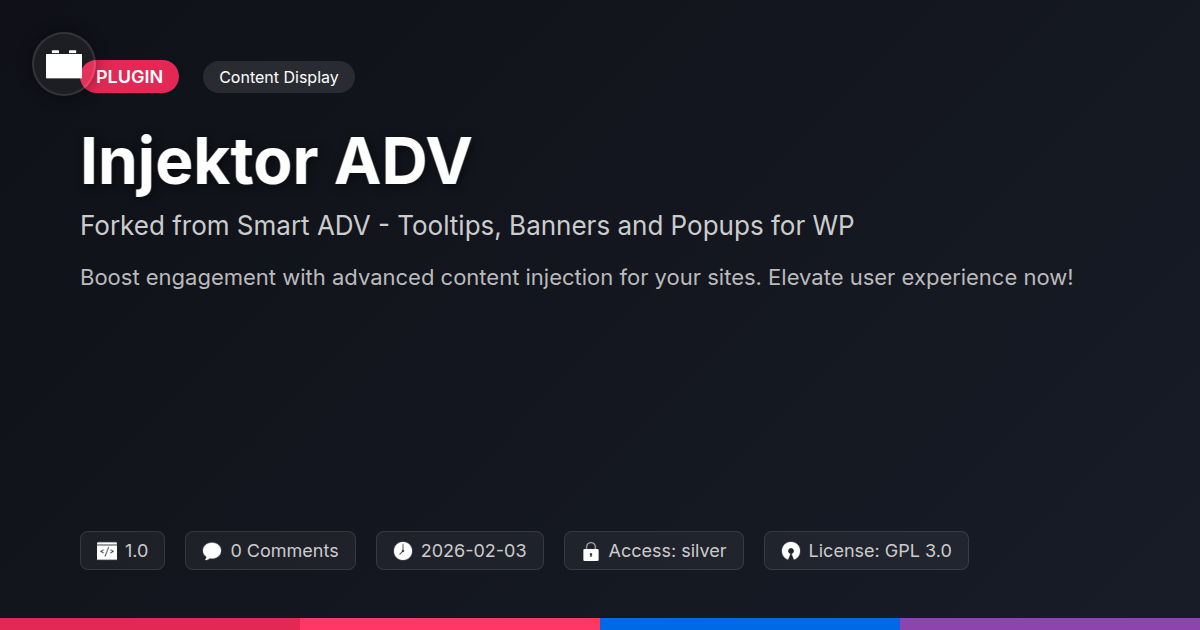 So, there you have it. Injektor ADV, the sophisticated evolution of a beloved tool, is here to help you inject a dose of intelligent engagement into your web projects without the usual digital drama. We've explored how it elevates simple tooltips into elegant whispers of information, transforms banners from visual noise into strategic announcements, and refines pop-ups from unwelcome guests into valuable interaction points. For developers and agencies, this isn't just another plugin; it's a toolkit for elevated user experience and streamlined project delivery. The beauty lies in its flexibility and the control it offers. You’re not just adding features; you’re architecting better digital journeys. By leveraging a strong, forked foundation, you gain stability, potential for customization, and the peace of mind that comes with a well-crafted solution. Think of the time saved, the client satisfaction gained, and the sheer elegance of a website that communicates perfectly, guiding visitors effortlessly to their goals. Stop wrestling with clunky interfaces and embrace a tool that empowers your creativity and professionalism. It’s time to make your sites not only function flawlessly but also engage delightfully. Go forth and inject some awe.