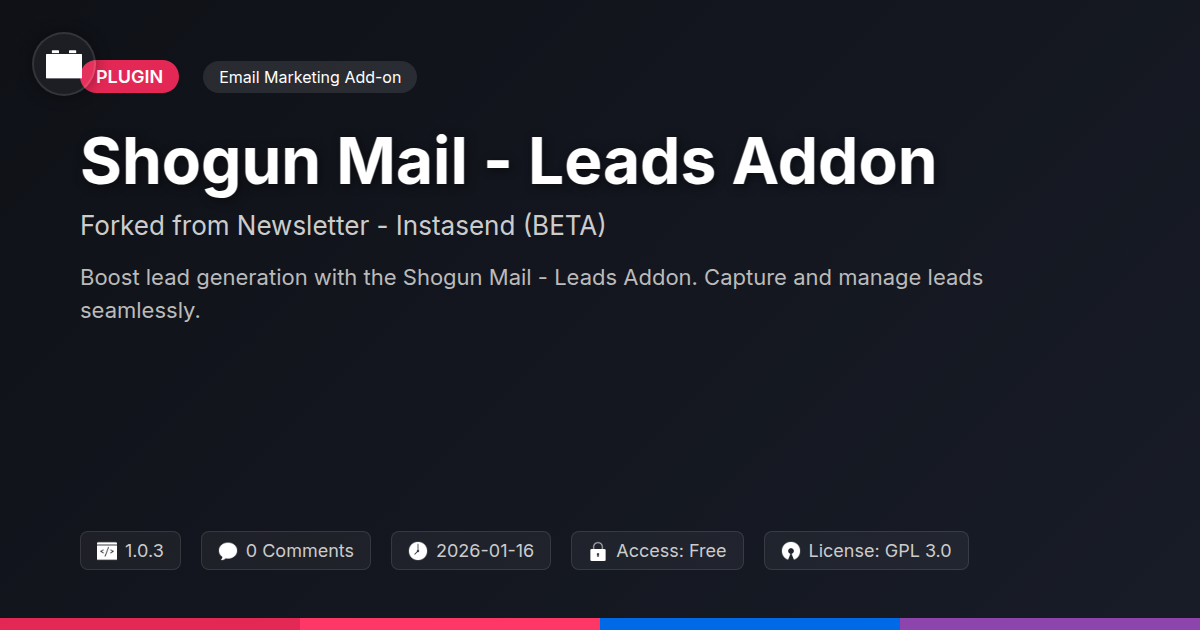 So there you have it. In a world saturated with digital noise, capturing and nurturing leads is less of a luxury and more of a survival tactic. You've seen how Shogun Mail - Leads Addon steps up to the plate, offering a pragmatic, powerful, and dare we say, sensible approach to managing the lifeblood of any online venture: your audience. It’s for the developers who appreciate clean code and control, the agencies who need to deliver value without breaking the bank, and anyone who scoffs at bloated subscription models for features they’ll only ever use half of. This isn't about reinventing the wheel; it's about making the wheel spin smoother, faster, and without costing you a fortune in oil changes. By integrating seamlessly with your existing systems, it removes the friction that often leads to abandoned carts and missed connections. You get to keep your data, maintain your creative control, and focus on what truly matters: building relationships with your audience. Consider it your secret weapon in the ongoing quest for online growth, a testament to the fact that powerful solutions don't always need a six-figure price tag or a phalanx of support staff. The power to effectively capture, organize, and leverage your leads is now firmly within your grasp, right where it belongs – on your turf.