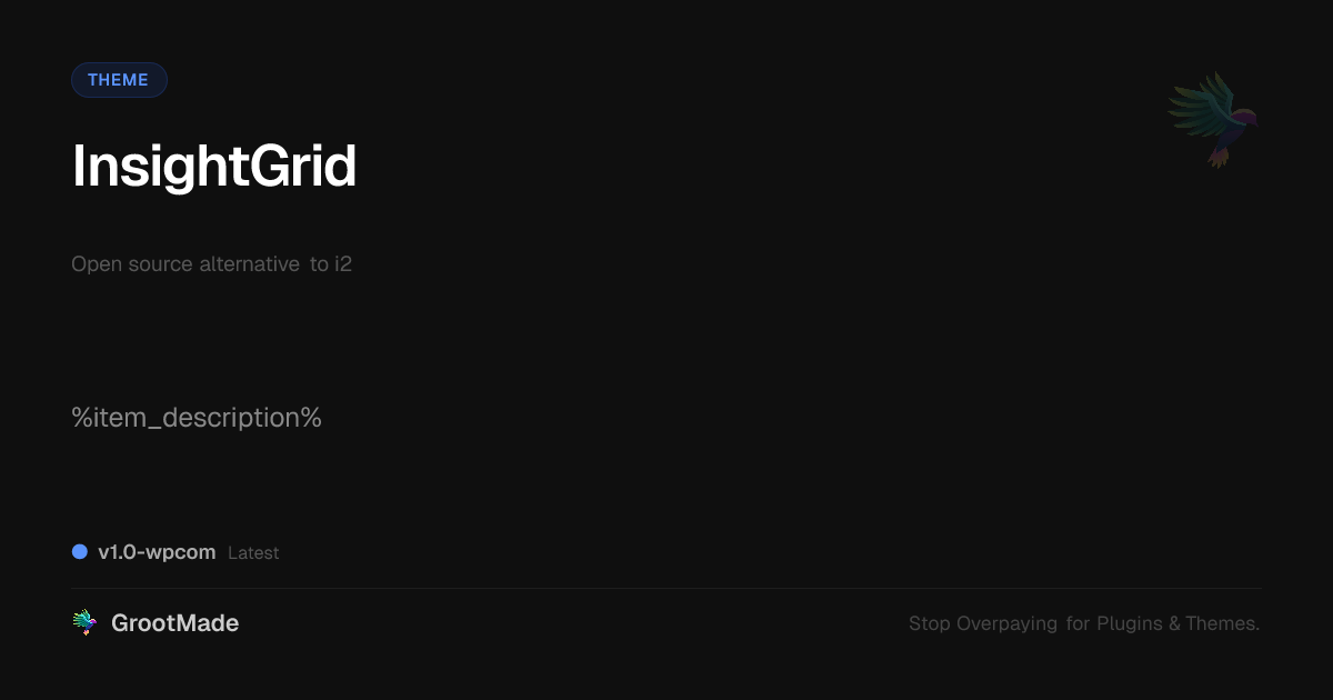 GrootMade is NOT affiliated with i2 or its original author. i2™ is a trademark of its respective owner and use of it does not imply any endorsement or affiliation. This product has been forked under the GNU General Public License (GPL) and all non-GPL assets (such as proprietary images, fonts, and branding) have been removed. Distributing GPL-licensed code is 100% legal.