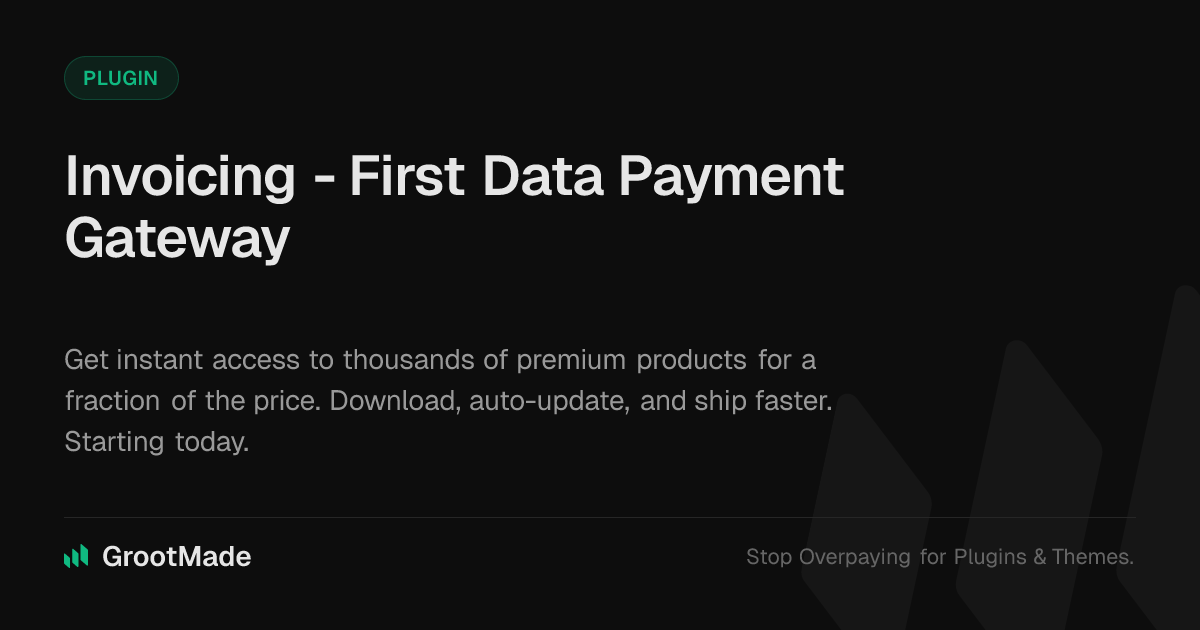 GrootMade is NOT affiliated with Invoicing - First Data Payment Gateway or its original author. Invoicing - First Data Payment Gateway™ is a trademark of its respective owner and use of it does not imply any endorsement or affiliation. This product has been forked under the GNU General Public License (GPL) and all non-GPL assets (such as proprietary images, fonts, and branding) have been removed. Distributing GPL-licensed code is 100% legal.