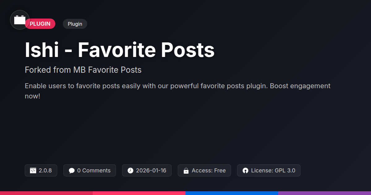 So, there you have it. We've journeyed from the existential dread of tacked-on features to the bright, shiny world of elegant user engagement with 'Ishi'. It's the kind of tool that makes you feel slightly smug, like you've discovered a cheat code for building better online experiences. For developers and agencies, this isn't just another plugin; it's an efficiency multiplier, a client-pleaser, and a testament to sensible engineering. It’s the digital equivalent of finding that one perfect wrench that fits every bolt. You get robust functionality without the usual headache, allowing you to focus on the truly creative aspects of your work, rather than wrestling with arbitrary limitations. For the open-source aficionados, 'Ishi' represents the spirit of collaboration, transparency, and building things that truly serve the community. It’s a reminder that powerful solutions don’t always need proprietary shackles. This plugin empowers your users, giving them a voice in what they love, and it empowers you, the builder, with a tool that’s as enjoyable to implement as it is effective to use. In a world of endless complexity, 'Ishi' offers a refreshing dose of clarity and purpose. Go ahead, give your users the gift of favorites, and give yourself the gift of sanity. You've earned it.