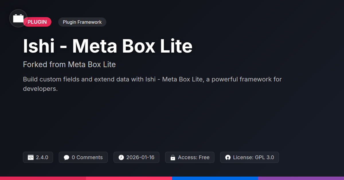 So, have we convinced you yet? If you're a developer who's ever stared longingly at your development environment, wishing you had more granular control over your data structures, then Ishi - Meta Box Lite might just be the breath of fresh air you’ve been looking for. We've seen how the standard offerings can feel like trying to fit a square peg into a round hole on even moderately complex projects. It’s the digital equivalent of being handed a spork when you need a full chef’s knife set. That’s where a powerful, flexible framework like Ishi steps in. It’s built for the creators, the tinkerers, and the slightly-caffeinated-at-3-AM problem solvers among us. By forking from a solid foundation and focusing on what truly matters – extensibility, usability, and developer freedom – Ishi provides a robust solution without the unnecessary baggage. Whether you're a solo developer crafting a niche website, an agency building bespoke solutions for clients, or an open-source enthusiast who believes in transparent and community-driven tools, Ishi offers a compelling proposition. You get the power to build complex data fields, implement intricate conditional logic, and manage your content in ways that were previously only accessible with significant custom coding or expensive, proprietary systems. The 'Lite' designation? It’s less about limitations and more about a focused, essential feature set that gets the job done, making it an ideal starting point for any ambitious project. So, take the plunge. Give Ishi - Meta Box Lite a spin. You might just find it’s the key to unlocking a new level of efficiency and creativity in your development workflow. Your future clients (and your own sanity) will thank you.