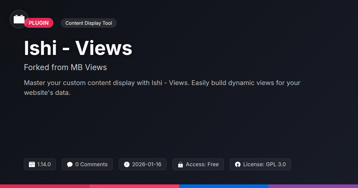 Imagine a tool that empowers you to build exactly what you envision, from simple post grids to sophisticated directories and showcases, all without getting lost in the weeds. A tool that’s not afraid to stand on the shoulders of giants but carves its own path. This is where Ishi - Views comes in. Forged from a respected codebase, it offers a fresh perspective on displaying your site’s data. We're talking about ditching the tedious manual loops and embracing a more intuitive, yet powerful, approach. Because your time is too valuable to spend debugging WP_Query snippets when you could be designing.