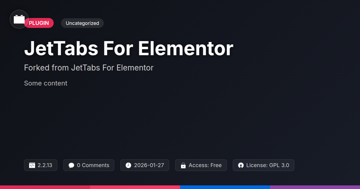 GrootMade is NOT affiliated with JetTabs For Elementor or its original author. JetTabs For Elementor™ is a trademark of its respective owner and use of it does not imply any endorsement or affiliation. This product has been forked under the GNU General Public License (GPL) and all non-GPL assets (such as proprietary images, fonts, and branding) have been removed. Distributing GPL-licensed code is 100% legal.