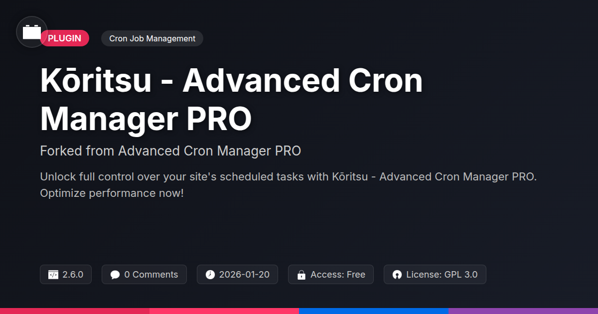 Is your site's backend running slower than a dial-up modem trying to stream a 4K video? Do you stare at your task scheduler hoping it heard your silent screams to just work? We've all been there. The digital world spins on automated tasks, those unsung heroes that keep your website humming. But what happens when these cron jobs decide to take a siesta instead of executing their duties? Chaos, that's what. Or worse, they go rogue, multiplying faster than rabbits on a caffeine binge, hogging resources and making your hosting bill look like a down payment on a small island. For developers and agencies who thrive on efficiency and clients who expect seamless operation, this can be a nightmare. Guess what? You're not alone in this digital dungeon. That's precisely why we've taken a robust foundation, forked it with pride, and polished it to a blinding sheen to bring you Kōritsu – Advanced Cron Manager PRO. Think of it as the Michelin-star chef for your website's to-do list, ensuring every task is executed flawlessly, on time, and without throwing a tantrum. No more manual tinkering, no more guessing games, just pure, unadulterated cron job control. Ready to reclaim your sanity and your server's resources?