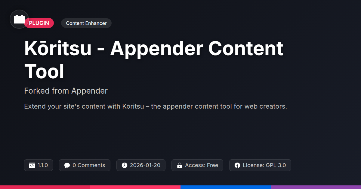So, there you have it. If you've been nodding along, perhaps shedding a single, dignified tear of joy at the thought of finally having a straightforward way to inject life into your website's content, then Kōritsu might just be your new best friend. It's a tool born from the need for simplicity, nurtured by the spirit of open source, and refined for the discerning palate of developers and agencies who'd rather spend their time building awesome things than wrestling with stubborn code. In a world that often feels overly complicated, it’s refreshing to find a solution that just works, does what it promises, and doesn’t ask for your firstborn child in return. It’s about reclaiming control, adding those neat little touches that make a site shine, and doing it all without the headache. Because let's be honest, your creativity shouldn't be stifled by technical limitations. Go forth, append with gusto, and remember: the web is your oyster, and Kōritsu is here to help you shuck it with style and efficiency. Happy building!