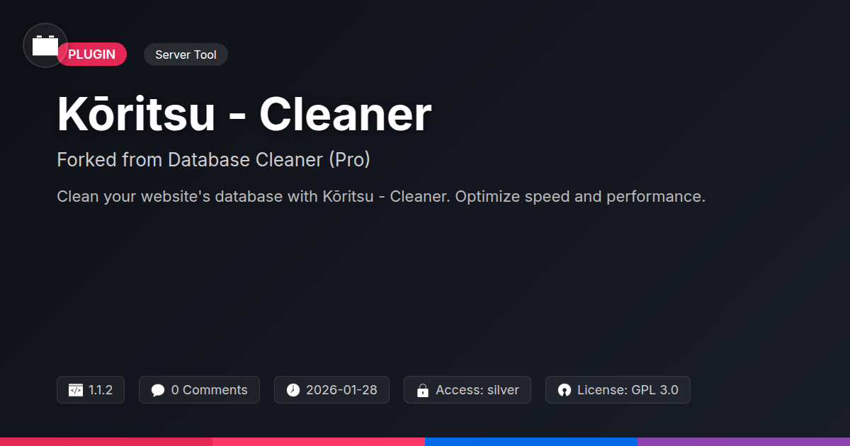 So, there you have it – Kōritsu - Cleaner, the digital equivalent of a minimalist’s dream home for your website's backend. We’ve journeyed through the digital sewers of database bloat, where forgotten revisions and phantom data lurk, making your site sluggish and your developers weep softly into their keyboards. But fear not, for Kōritsu - Cleaner emerges as the shining knight in not-so-shining armor, ready to sweep away the digital dust bunnies with ruthless efficiency and surprising grace. It’s not just about deleting old junk; it’s about reclaiming your site's agility. Think of it as a detox for your database – less baggage, more speed, and a happier, more responsive online presence. For the agency owner watching their client's satisfaction levels dip with every slow-loading page, this is your secret weapon. For the solo developer pulling their hair out over unexplained performance hiccups, this is your calm in the storm. And for the open-source aficionado who believes in power through community and transparency, this tool embodies those very ideals, offering robust functionality without the proprietary shackles.