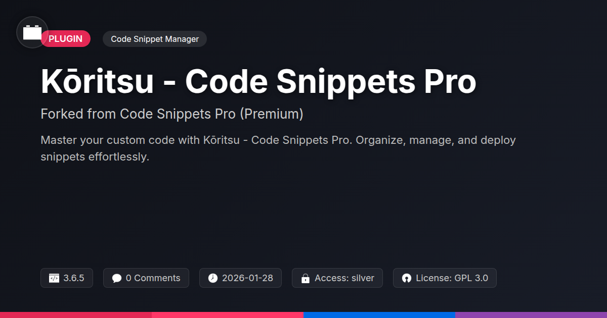 So, there you have it. We've journeyed from the murky depths of plugin overload and chaotic code management to the clear, organized shores of Kōritsu. We've commiserated over those late-night debugging sessions, chuckled at the absurd lengths we sometimes go to for a simple script, and finally, we've found a beacon of hope. Kōritsu isn't just another tool; it's a philosophy brought to life – a testament to efficient, intelligent code management for those who appreciate clarity and control. It’s the digital equivalent of finally finding your keys after searching your entire house. For developers, agencies, and anyone who loves the elegance of well-structured code, this forked solution offers a robust, reliable, and frankly, much saner way to handle custom functionality. No more wading through theme files or praying a rogue plugin doesn't break your entire site. You can confidently add, manage, and deploy snippets, knowing they're organized, accessible, and less likely to cause an existential crisis. It’s about reclaiming your time, enhancing your site's performance with precision, and building with greater peace of mind. So, if you’re tired of the constant digital juggling act, if you crave a streamlined approach that respects your craft, it’s time to embrace the power of dedicated snippet management. Make the switch to Kōritsu, and experience the sweet relief of having your code behave itself. Your future, less-stressed self will thank you.