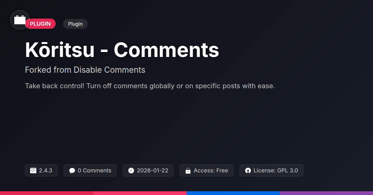 So there you have it. We've navigated the often-treacherous waters of website discussions, from the existential dread of comment spam to the zen-like peace of a clean, controlled digital space. You’ve seen how Kōritsu - Comments, building on a legacy of robust functionality, offers a straightforward yet powerful solution for developers, agencies, and anyone who values their online real estate. It's not just about hitting a 'disable' button; it’s about reclaiming your site’s focus, boosting its performance, and minimizing the administrative overhead that can siphon away your precious development time. For the open-source purist, this tool embodies the spirit of community-driven innovation – a reliable, transparent solution that puts you firmly in the driver's seat. Agencies, consider this your secret weapon for delivering polished, client-pleasing websites that are free from the digital equivalent of a roadside hawker. And for every developer out there wrestling with overflowing comment notifications, remember that sometimes, the most effective design choice is the absence of noise. Embrace the quiet, streamline your workflow, and deliver a superior experience. It’s time to take command, and Kōritsu - Comments is your trusted ally in achieving digital tranquility. Your site deserves it, and frankly, so do you.