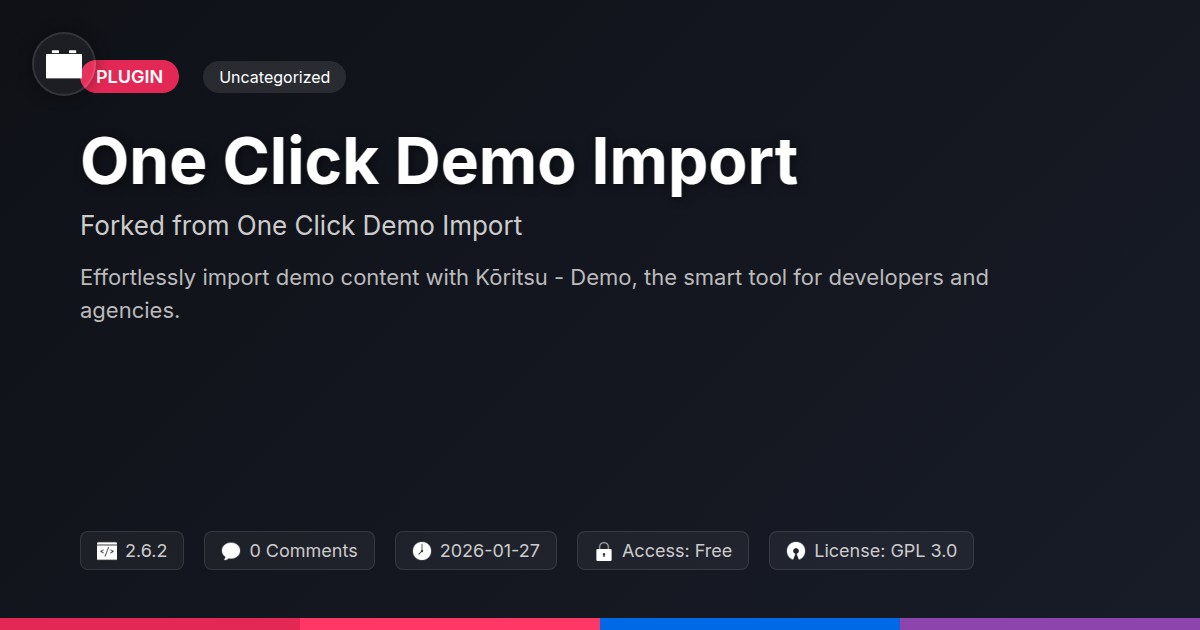 Ever looked at a fresh website install and felt a sigh escape your lips, contemplating the sheer mountain of clicking and configuring ahead? You know, the part where you import settings, pages, posts, widgets, and all the other digital confetti that makes a beautiful theme actually look beautiful? If the answer is a resounding 'YES!', then buckle up, buttercup. We're about to introduce you to a tool that's less about a "one-click" solution and more about a "smart, efficient, and slightly snarky" path to getting your projects up and running. Think of it as having a seasoned developer's sanity, bottled and ready for deployment. This isn't just about saving time; it's about reclaiming your creative energy, reducing the soul-crushing repetition, and frankly, avoiding the existential dread that comes with manually setting up dozens of sites. We’ve forked a gem, given it a bit of an edge, and polished it until it shines, all for the discerning developer who appreciates a tool that just works, without the unnecessary fanfare. Prepare to banish demo import headaches to the digital dusty bin.