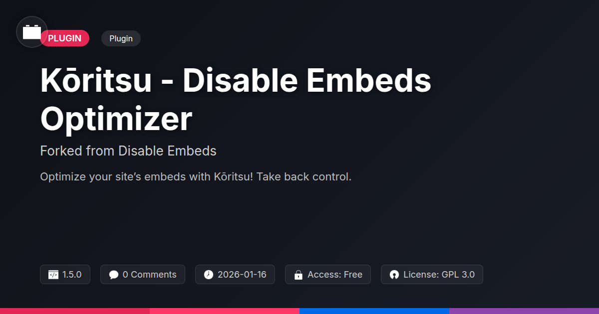 So there you have it. You’ve journeyed through the sometimes-messy, often-uninvited world of embedded content and discovered Kōritsu – your new digital bouncer, your content curator, your performance booster. We’ve peeled back the digital curtains to reveal not just a plugin, but a philosophy. A philosophy that says your website’s design and functionality are yours to command, not dictated by the whims of every external service. For developers, agencies, and the staunchly open-source-minded, this means reclaiming precious bandwidth, both for your servers and your own sanity. No more wrestling with rogue player embeds that throw your meticulously planned layout into a visual dumpster fire. No more inexplicable slowdowns caused by scripts you never explicitly invited. Kōritsu is that quiet, efficient upgrade you didn't know you desperately needed, a testament to the power of taking a good idea and making it even better, more focused, and more relevant to today's demanding digital landscape. It’s about refinement, control, and a cleaner, faster web. It’s about making sure your brilliant content gets the stage it deserves, without the distracting ensemble cast. So go forth and optimize. Make your site the sleek, sharp, and speedy digital haven it was always meant to be. The embed jungle is tamed, and the control is finally yours. And let’s be honest, isn’t that just chef’s kiss?
