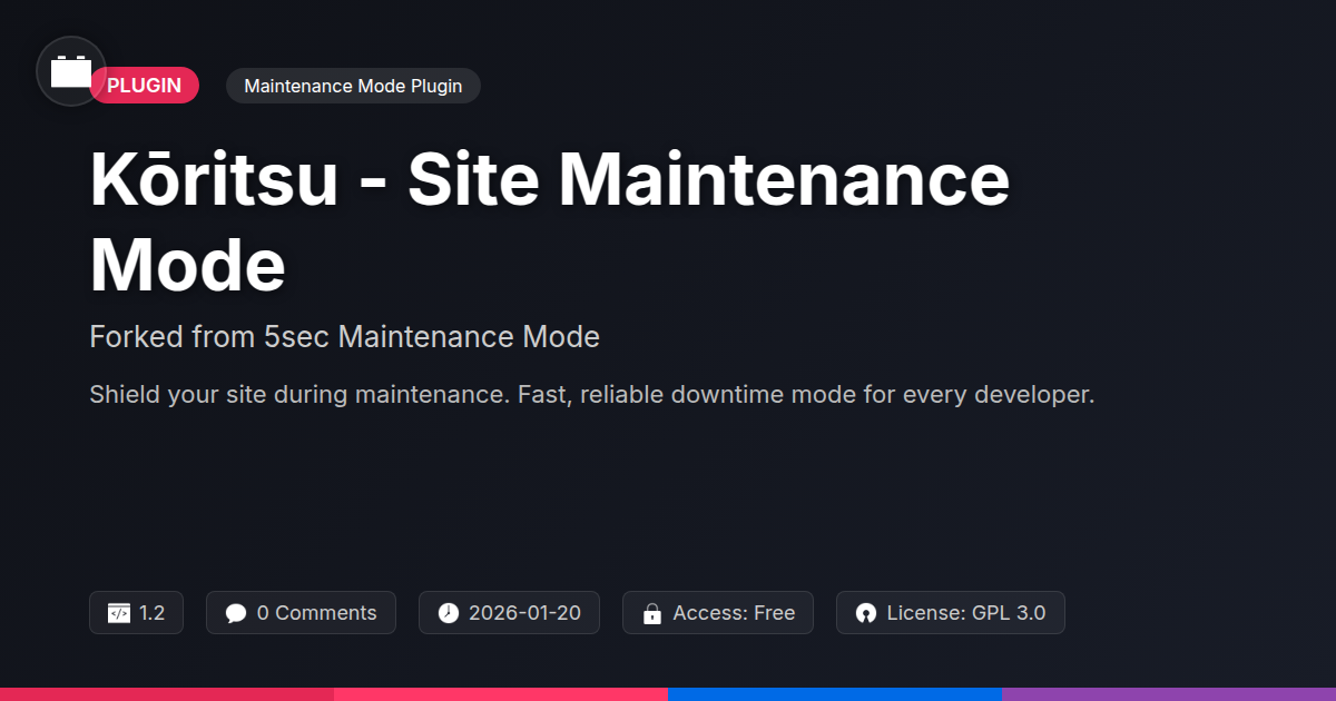 So, there you have it. The digital world is a constant hum of activity – updates, tweaks, and the occasional emergency patch. And while we adore the dynamism, we also appreciate a bit of order. Kōritsu isn't just about putting your site into 'maintenance mode'; it's about managing that crucial interim with professionalism, style, and a healthy dose of pragmatism. For us developers, agencies, and the vibrant open-source community, having a reliable, user-friendly tool that doesn't add to our already overflowing plate of tasks is like finding a unicorn in a field of broken code. It’s about transforming those potentially awkward downtime periods into opportunities to reinforce your brand’s professionalism, build anticipation, or simply provide clear communication to your audience. Kōritsu, evolved from a solid foundation, offers precisely that. It’s about taking what works, making it better, and giving you the power to control the narrative when your site is undergoing its necessary metamorphosis.